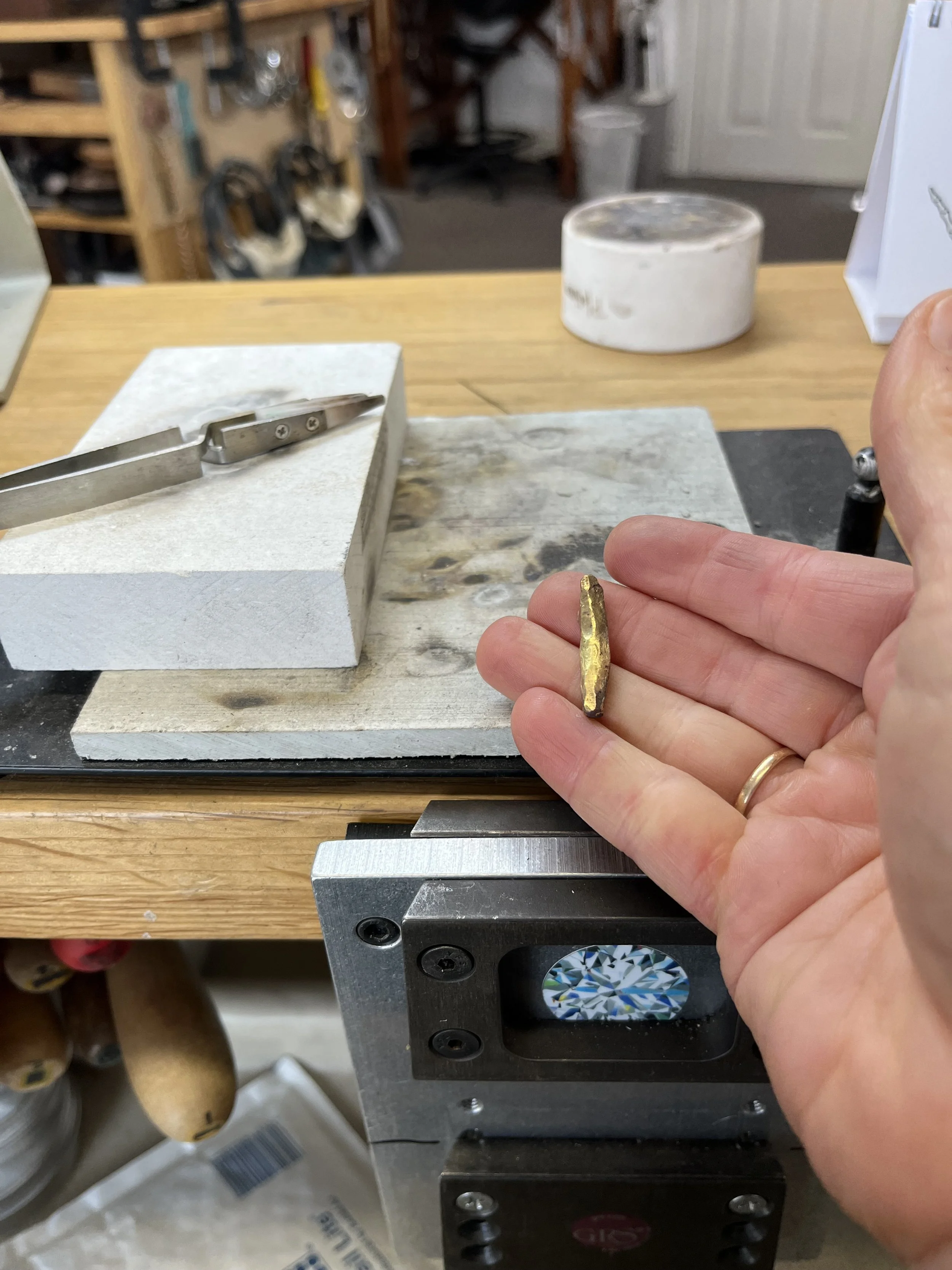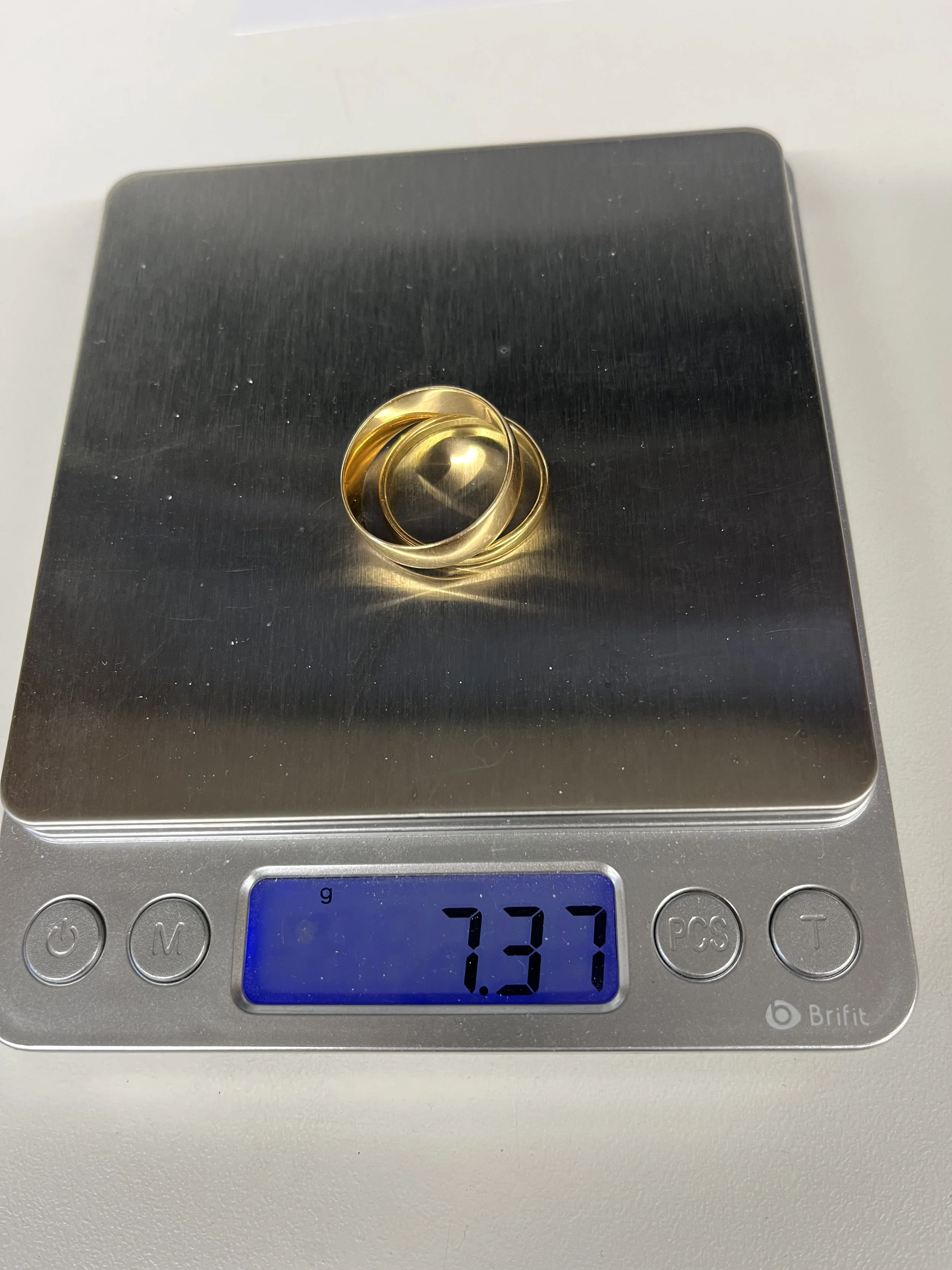 Here is a 2 wedding bands being melted together to be come a new item of jewellery with sentimental gold.